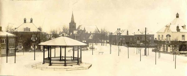 Oude muziektent in een besneeuwd Dr. Langeveldplein