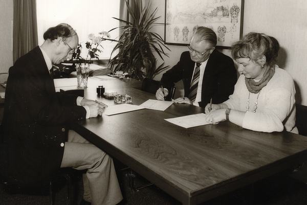Notaris Wilbert Weijtens ondertekent een akte met de familie Kuiken