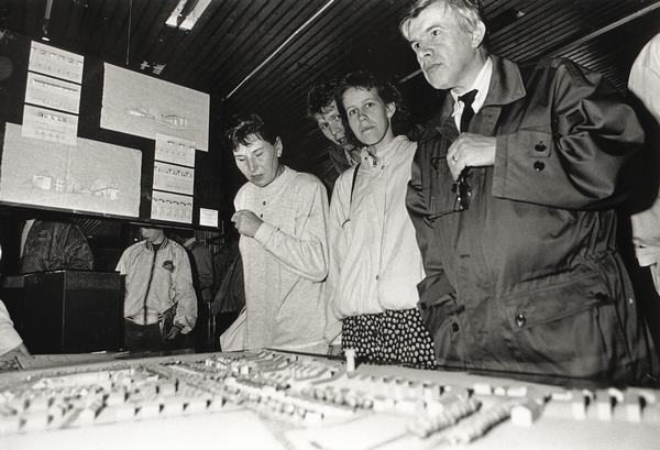 Ontwikkelingsplan Maquette Sliedrecht. De man op de voorgrond is L.van den Heuvel, gemeenteraadslid voor de S.G.P