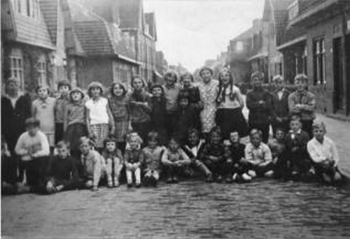 Groepsfoto gemaakt op de Oude Uitbreiding in de Julianastraat.