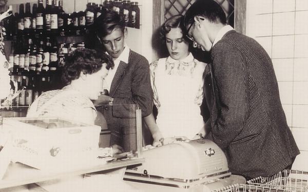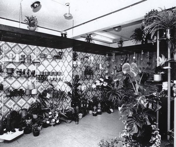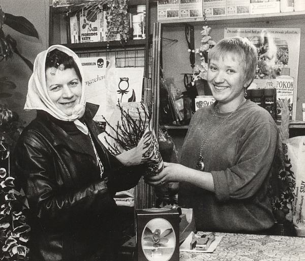 Bloemenzaak Fred Stuij aan de Rembrandtlaan, later Alleman.Verkoopster is Marja Bochanen