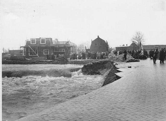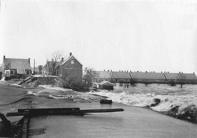 Dijkdoorbraak Noordhoek-Papendrecht tijdens watersnoodramp in 1953