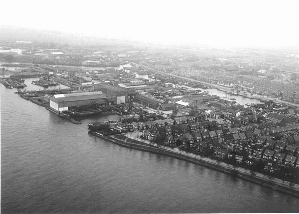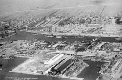Luchtfoto van scheepswerf De Klop