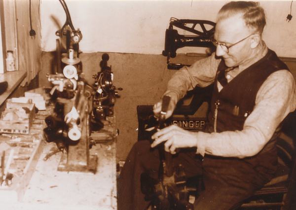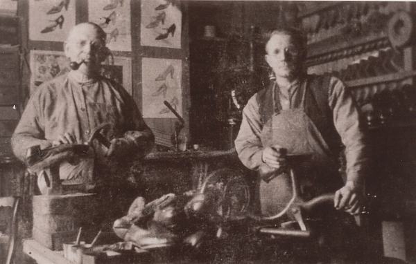 Schoenlapper. Dit is schoenmaker Van der Vlies die bijna bovenaan de Stationsweg zijn bedrijfje had