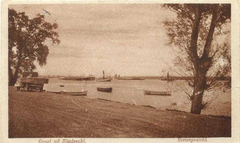Het pand links op de foto is nu de Leger des Heilswinkel, Rivierdijk 703.