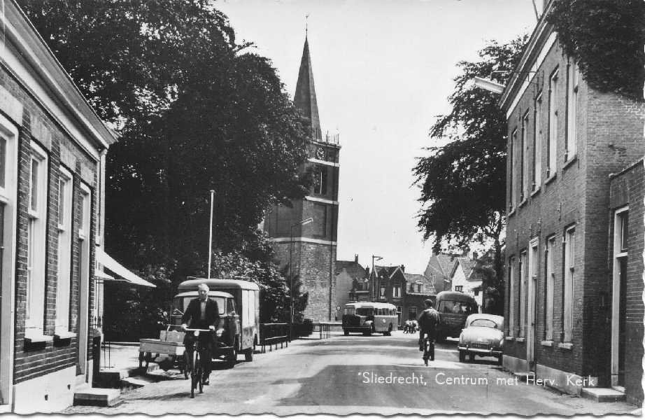 Bij de Nederlands Hervormde Kerk, met schoolgebouw en links pastorie.