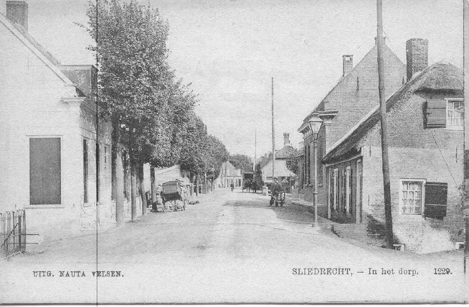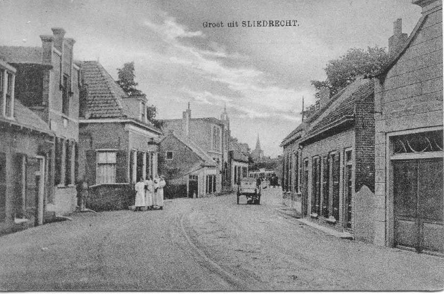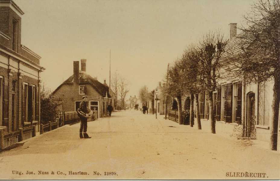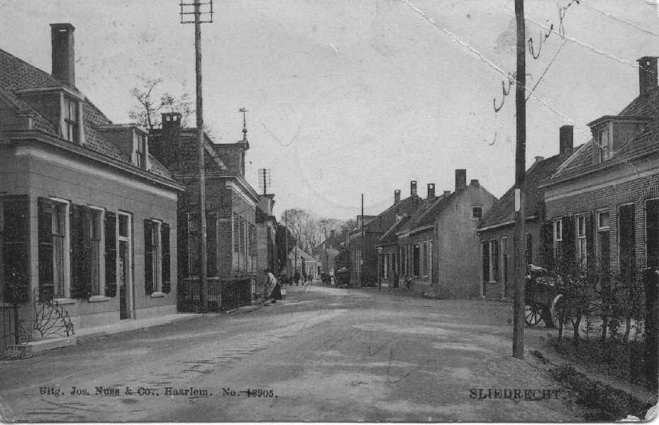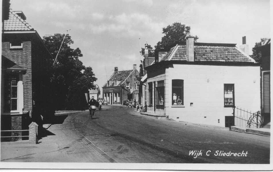 De dijk bij de huidige Geulstraat met rechts het oude pand van Netten electro. Woning links op de foto is nu Molendijk 24 en 24 a.