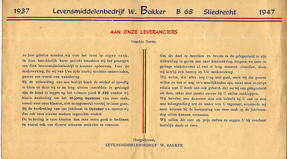 Levensmiddelenbedrijf/parlevinker Bakker.