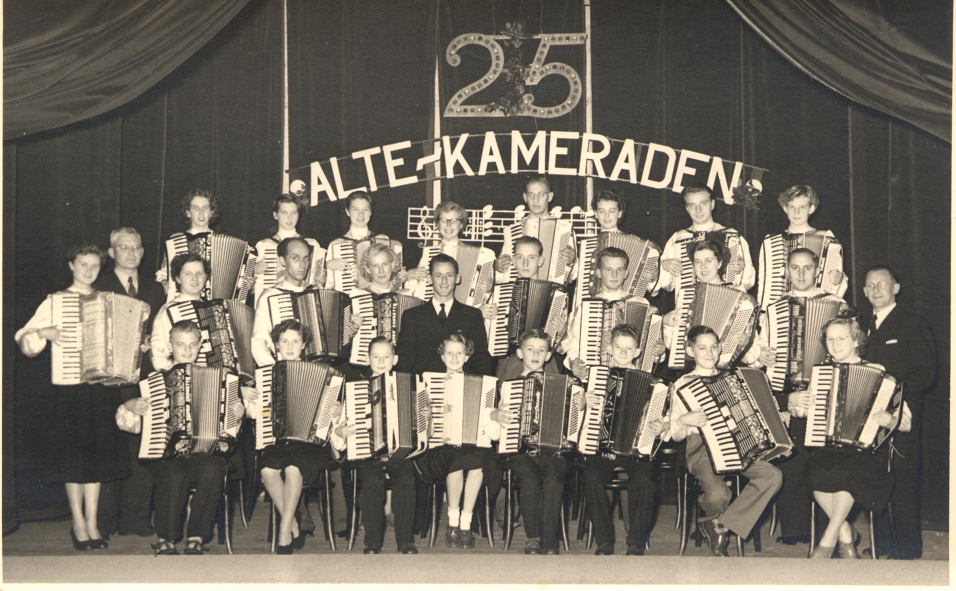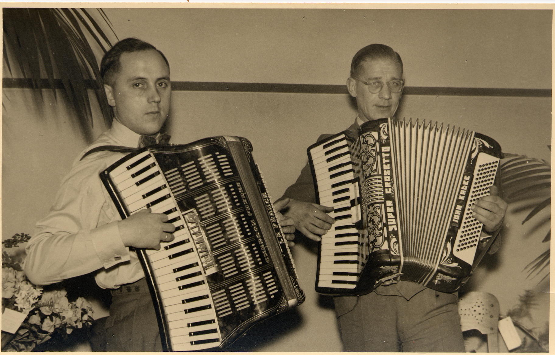 Piet Netten (electro) en Jaap Lanser (groenteboer) bespelen de accordeon.