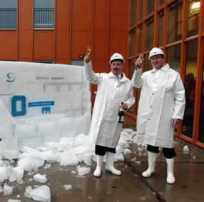 IJsfiguur gebruik bij de opnening van het gemeentekantoor