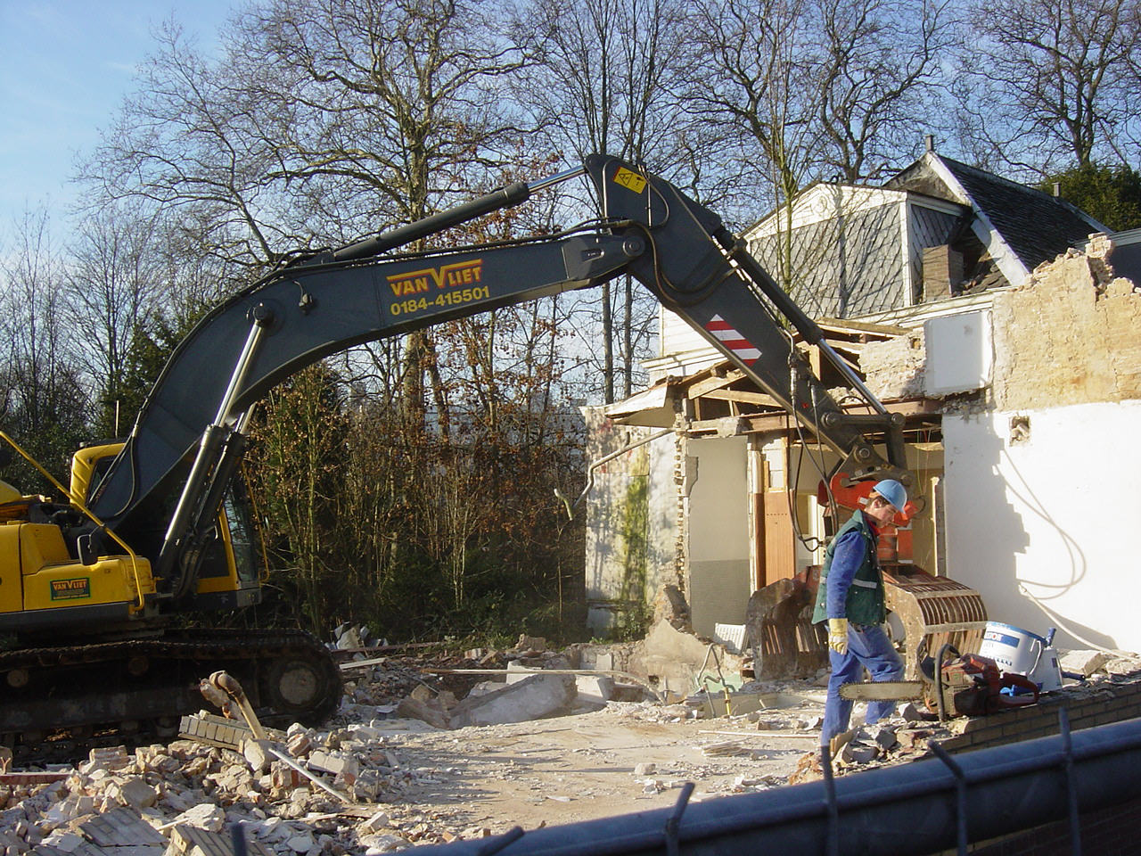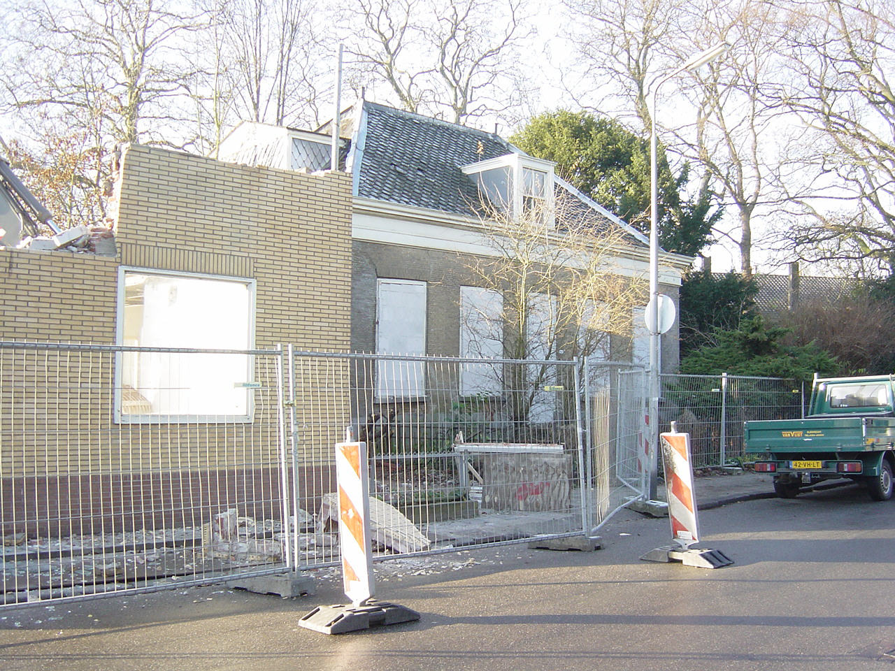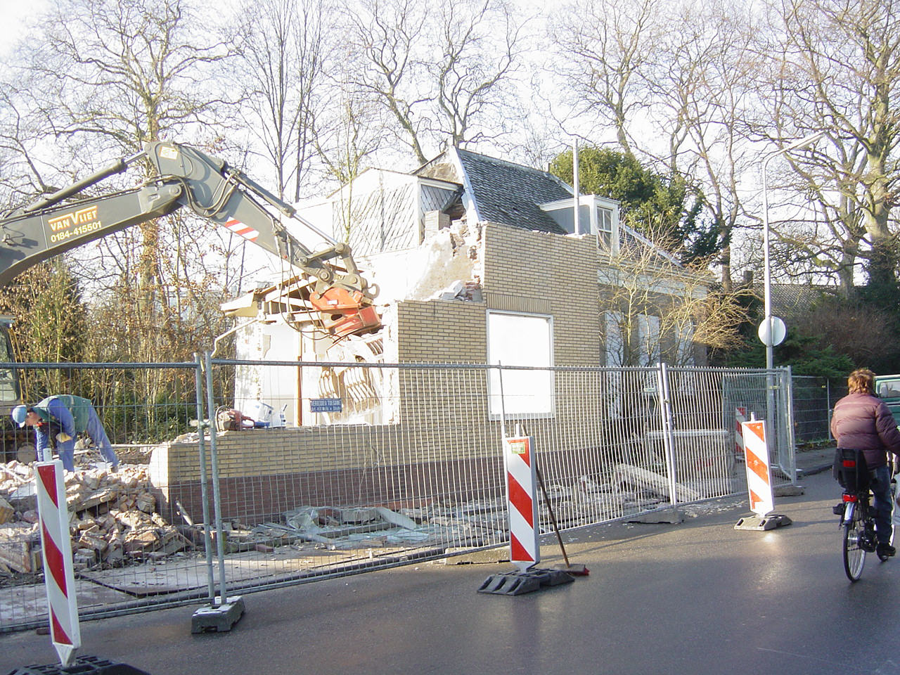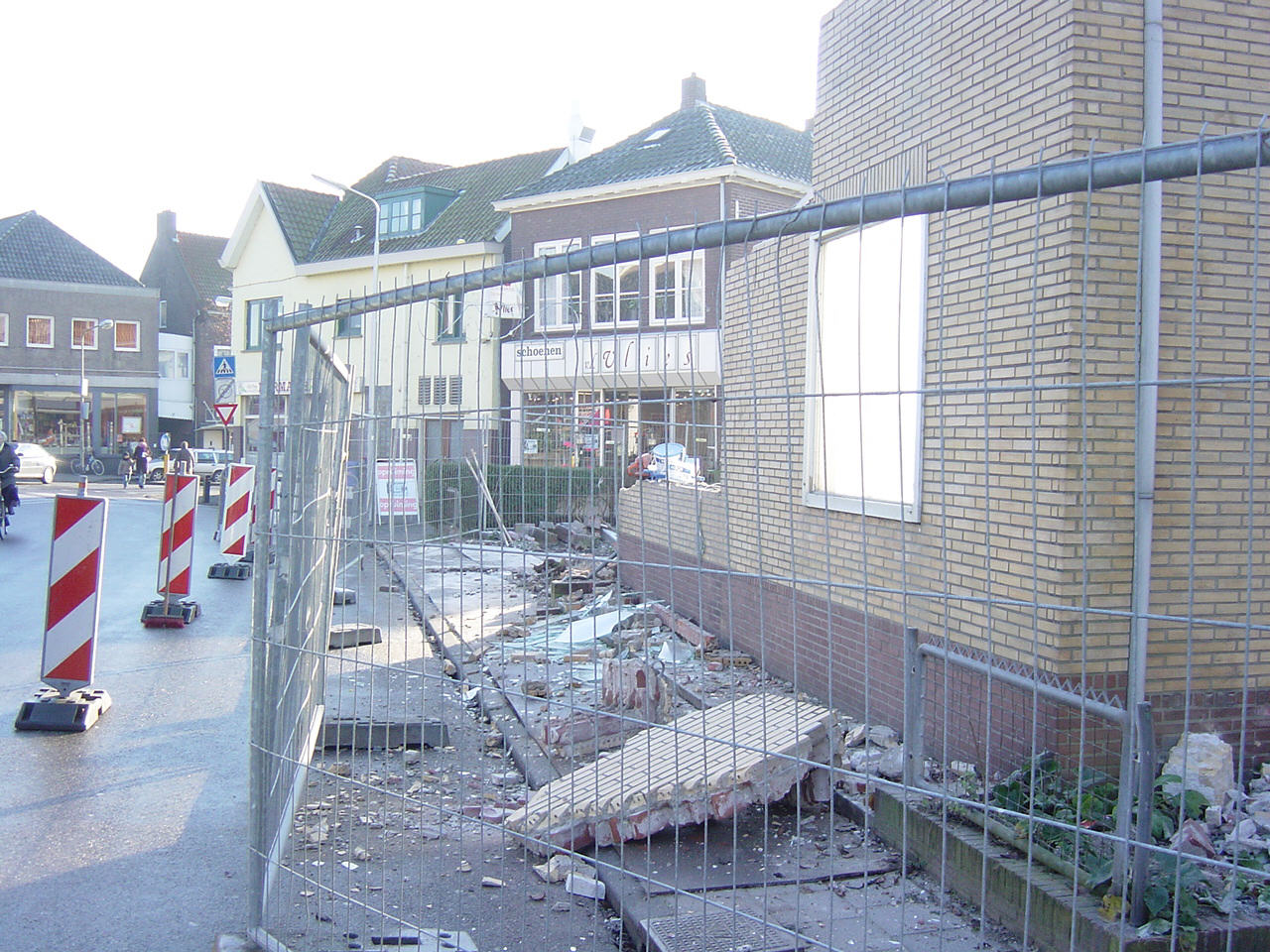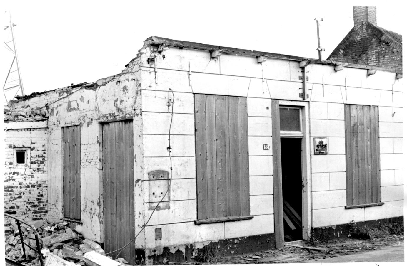 Pand familie Van Rees in de kerkbuurt tegenover de Grote Kerk wordt gesloopt. Daarnaast het zgn. Atelier.