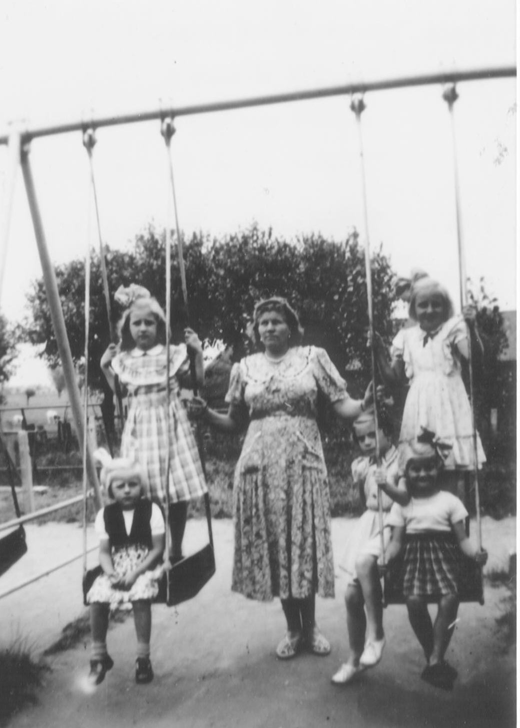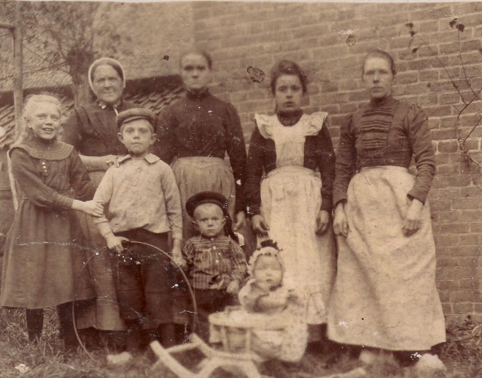 Naast Klara Koppelaar-Nederlof, met muts, haar zus Neel Nederlof en daarnaast (rechts) Pietje Koppelaar, later getrouwd met Izaak Kooiman.