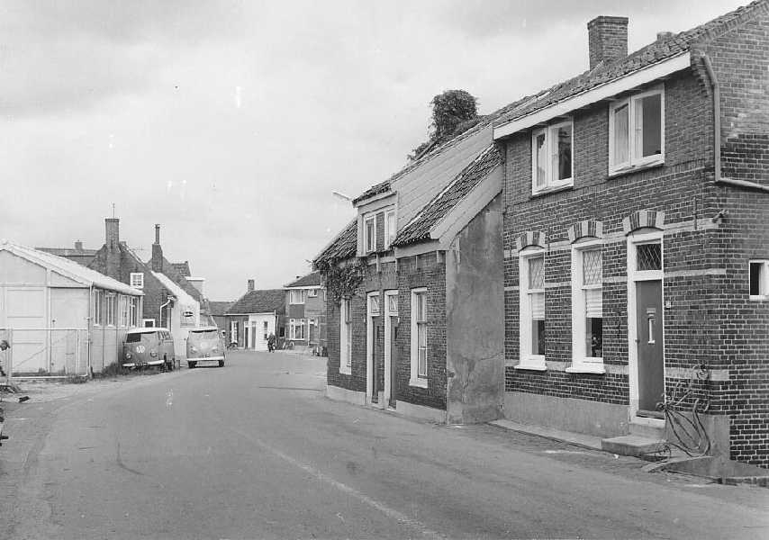 Huis met fiets is de woning van Zwarte Jaan, daarnaast de boerderij van Maat. Vervolgens het huis van de fam. Brandwijk. In het huis met witte gevel woonde P. de Wit (later Van de Graaf). In de stoep Gijs de Ruiter, daarna Henk Verheul.