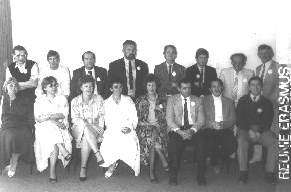 Eindexamenklas 1965 Erasmusmavo tijdens een rëunie in 1987.