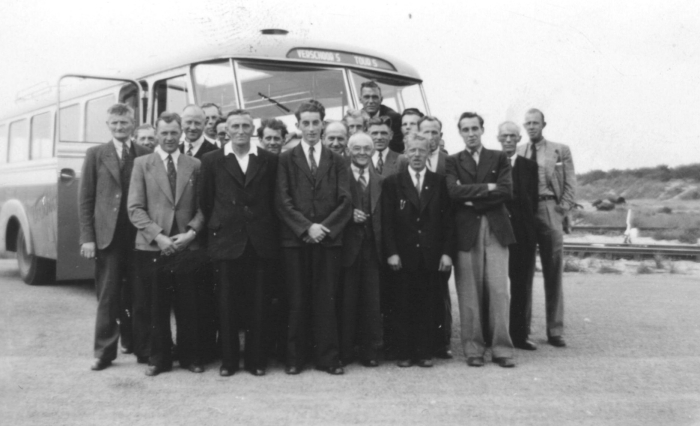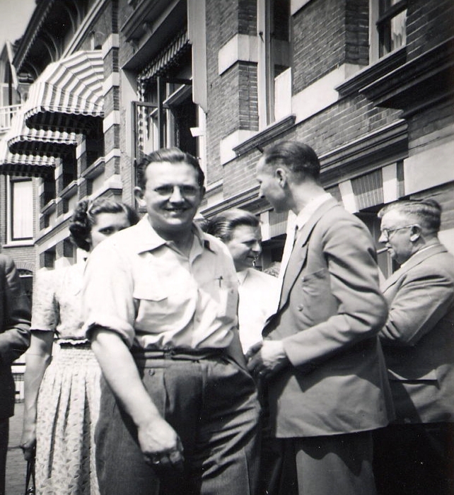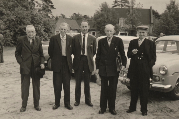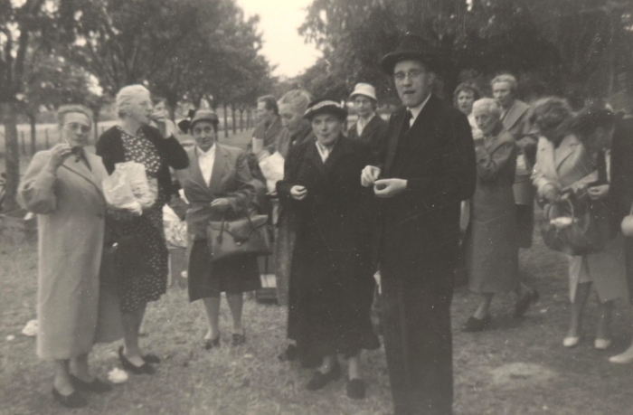 Man met hoed is ds.C.den Boer Hervormd predikant te Sliedrecht 1960-1966