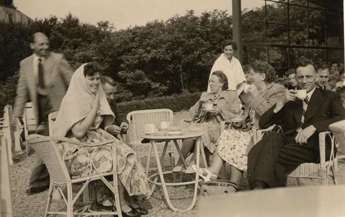 Eindexamenklas 1964 Erasmusmavo tijdens een rëunie in 1987.