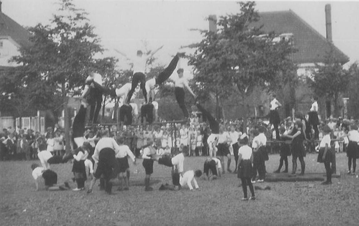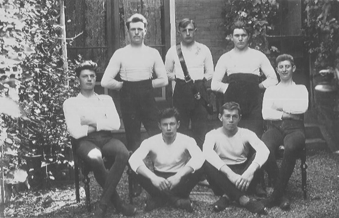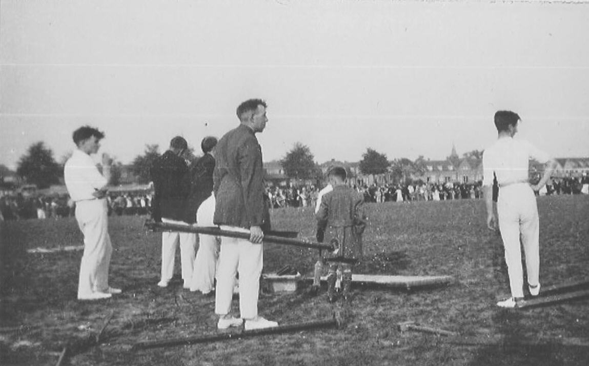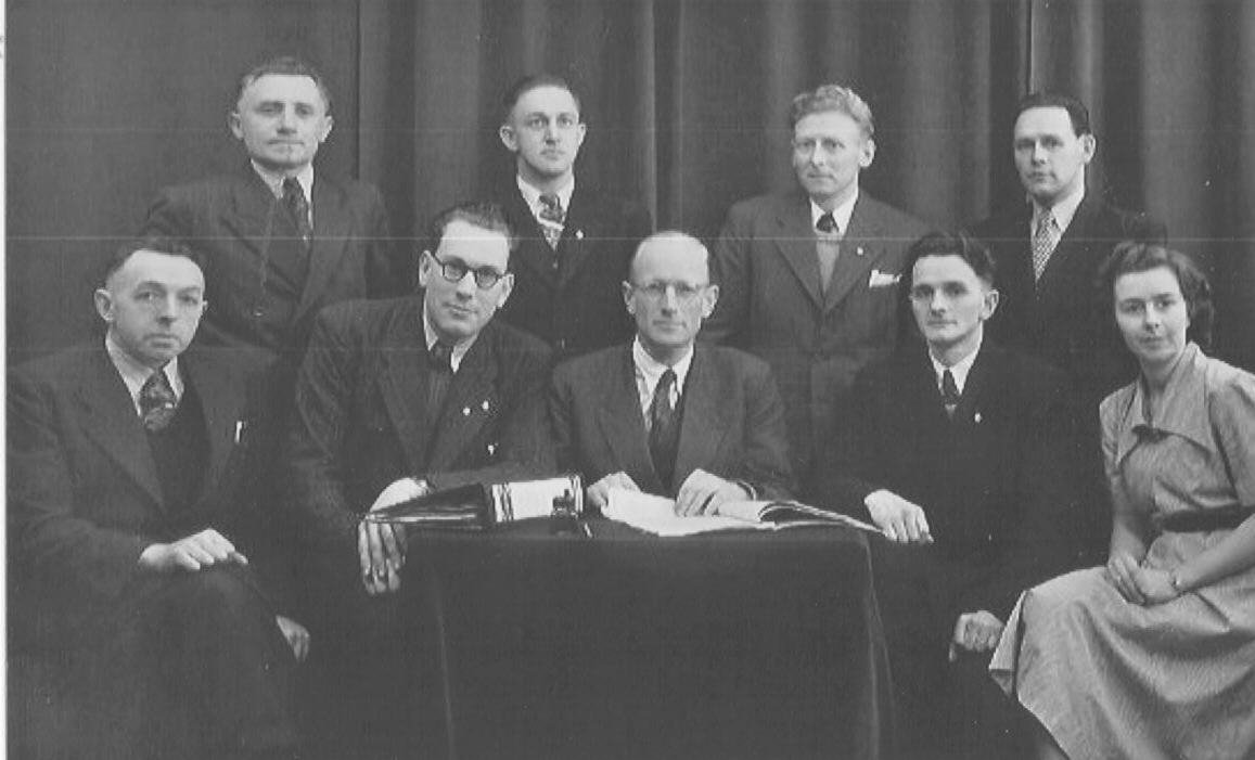 Bestuur Gymnastiekvereniging "S.S.S.": zittend v.r.n.l: J.A. (Jenny) Bakker-IJzerman, H. van Vaalen, H. de Boer (voorzitter), W. Oskam, P.H. Visser; Staande v.r.n.l J. Wapperom, Piet de Groot (1908-1956), Geurt Visscher (1907-1969), T. den Dekker.