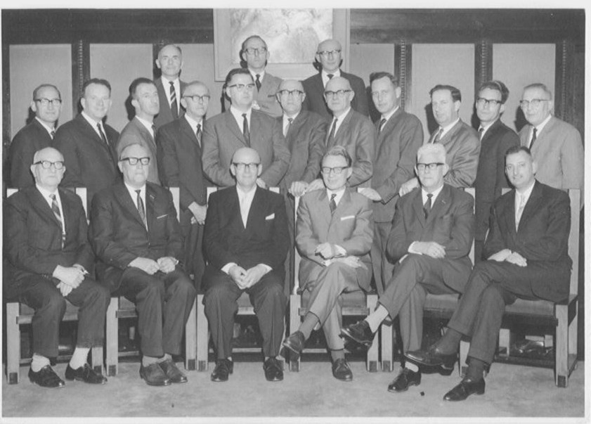 Bezoek van de commissaris der Koningin Vrolijk ontmoet in 1975 de wethouders De Boon, De Bruijn en Noordergraaf