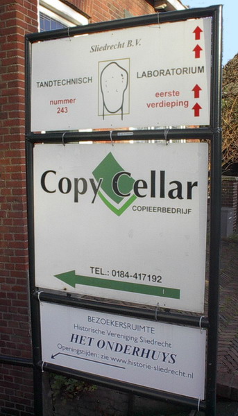 Bord van de Historische Vereniging Sliedrecht en Copy Cellar