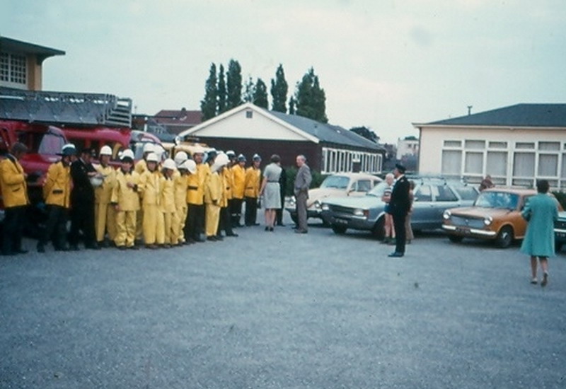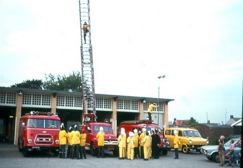 Een tijdje zijn de brandweerwagens geel gespoten. Dit is later weer veranderd, want het publiek dacht bij het woord brandweer aan de kleur rood. Het gele ford transitbusje was de commando wagen en werd gebruikt bij de controle van brandkranen.