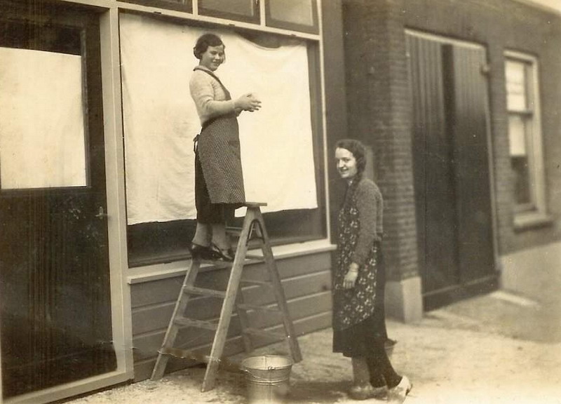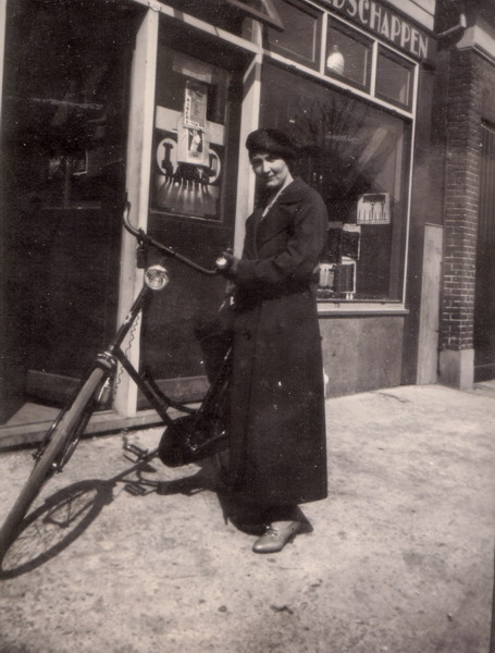 Gerda van Genderen, later getrouwd met J. A. van den Dool, aannemer. De foto is genomen voor de ijzerwinkel annex timmerwerkplaats.