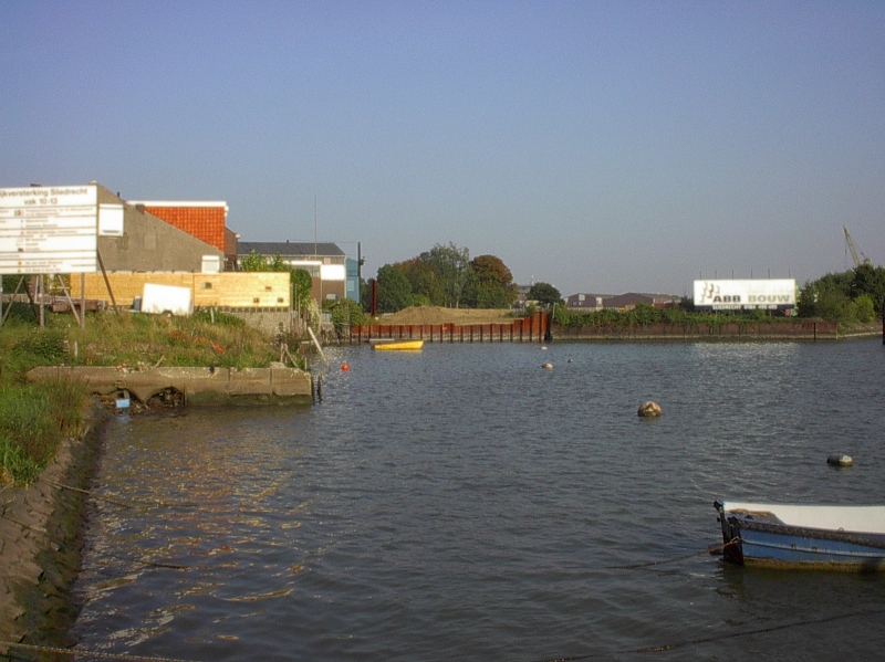 De afsluiting van het vroegere Kleindiep, een vaargeul langs de dijk.