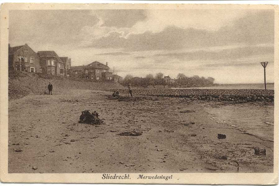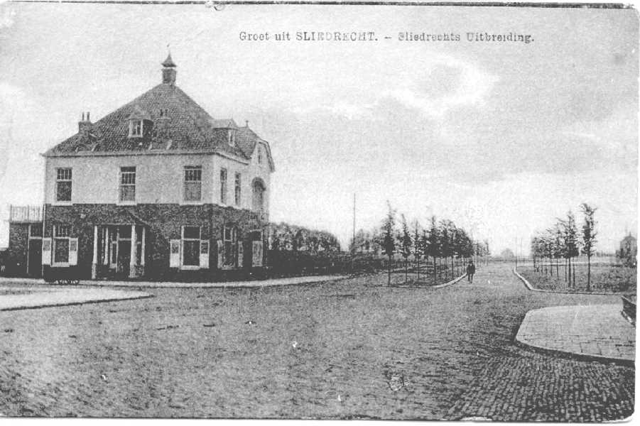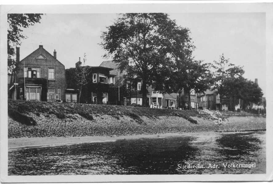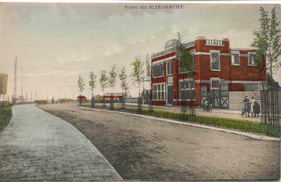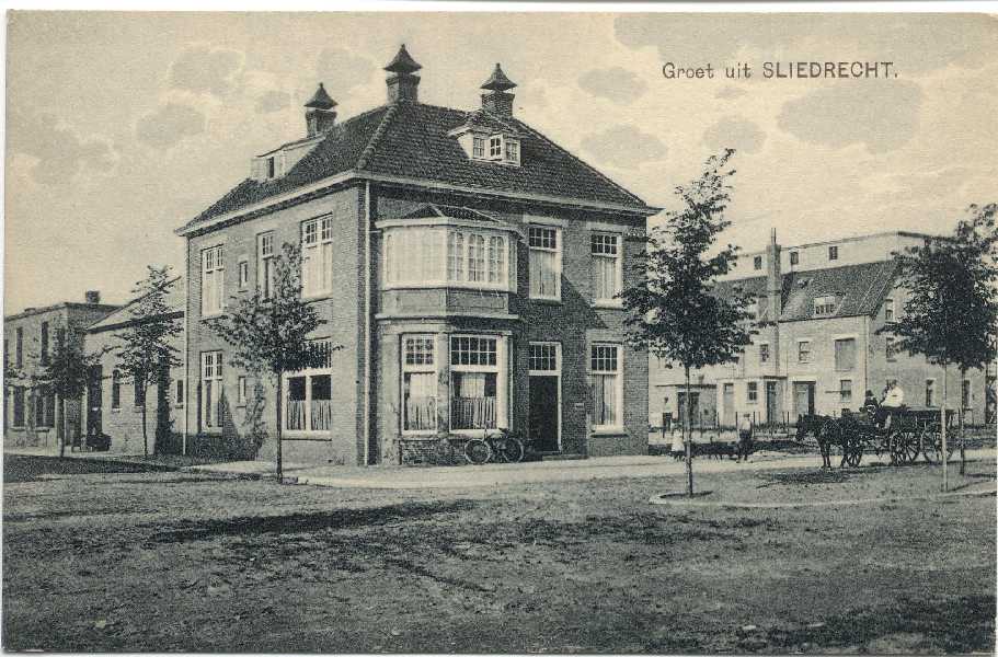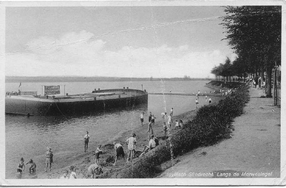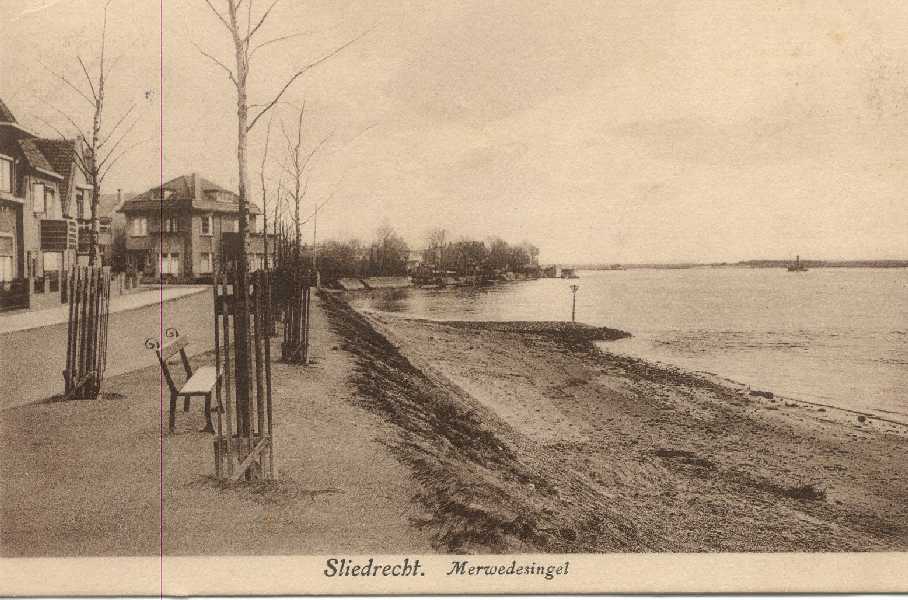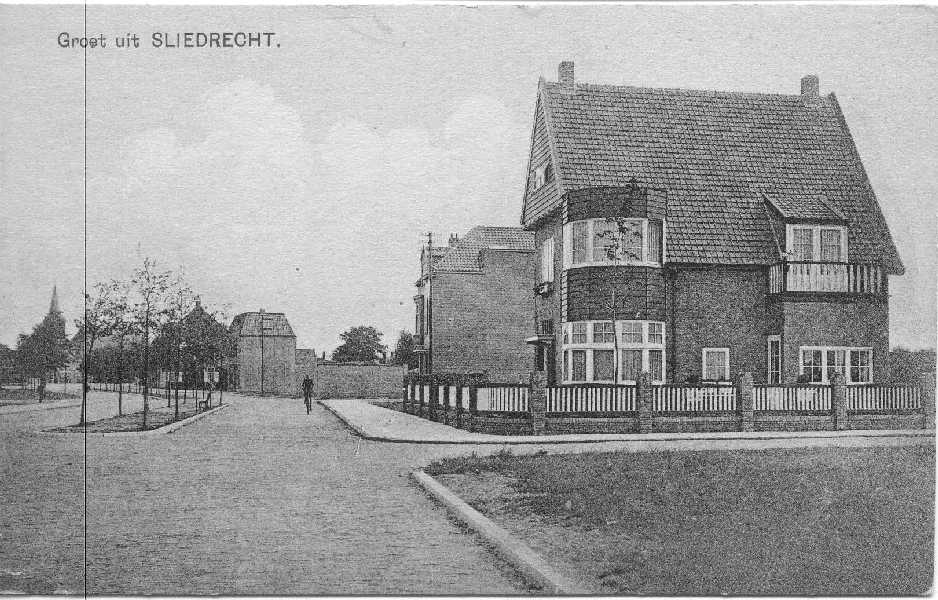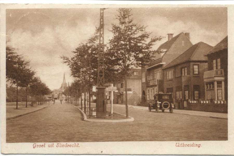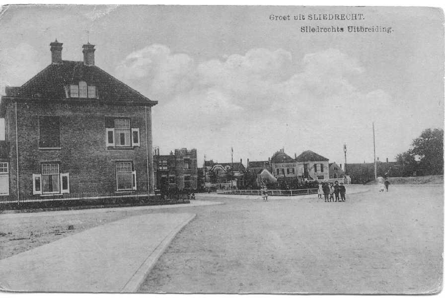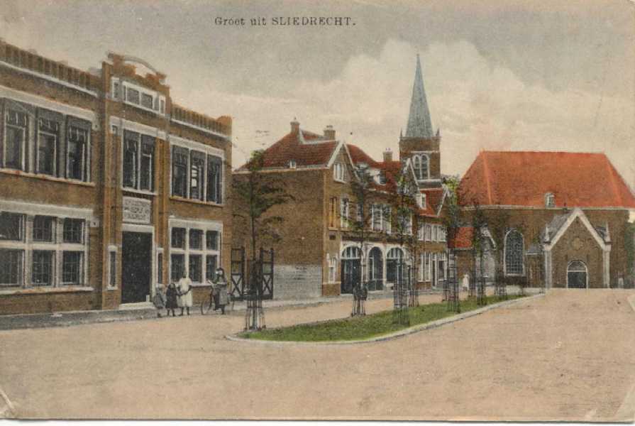 Merwestraat bij het Julianaschool, nu Oranje Nassauschool. Op achtergrong het Sliedrechtse gemeentehuis.
