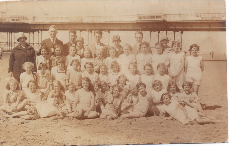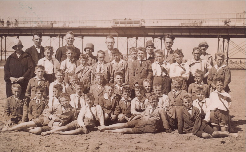 Schoolfoto. Het is een schoolreisje van school 6 (Wilhelminastraat) van klas 6 in 1928 naar de pier van Scheveningen.