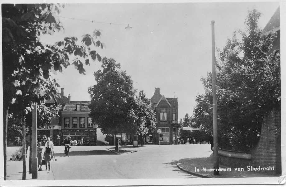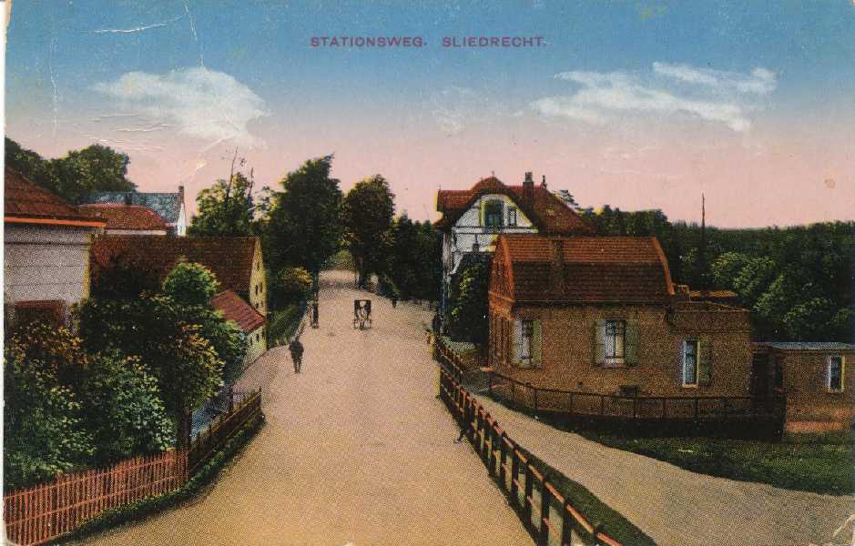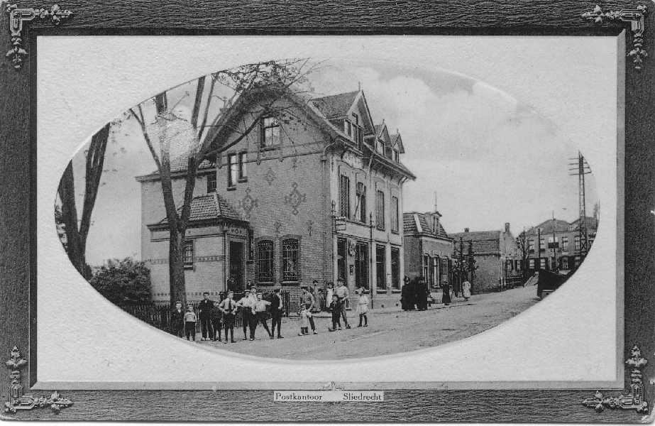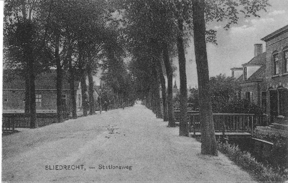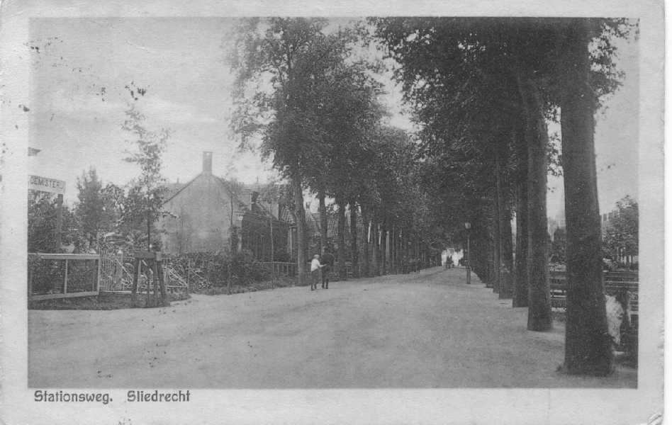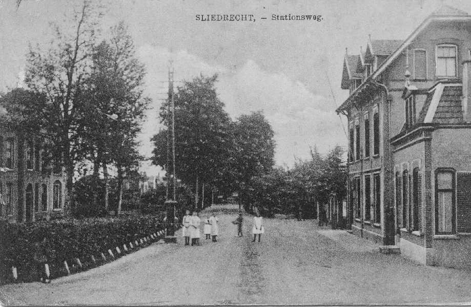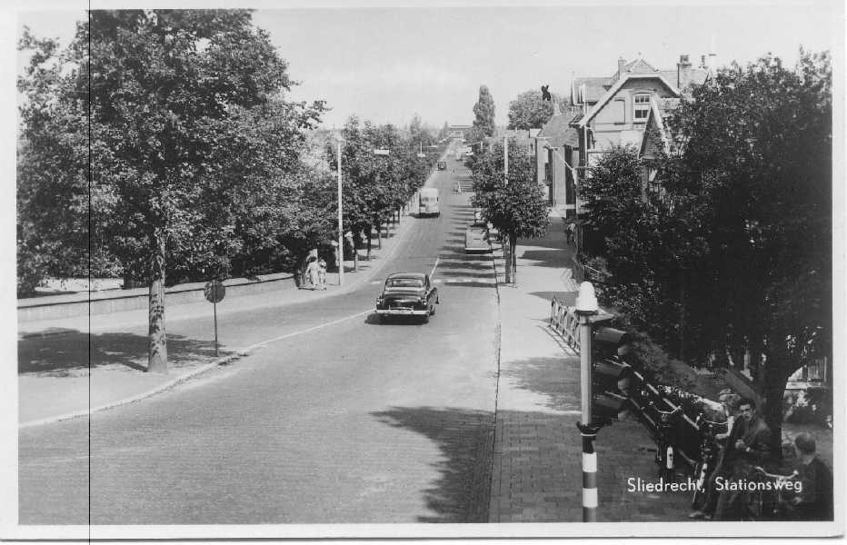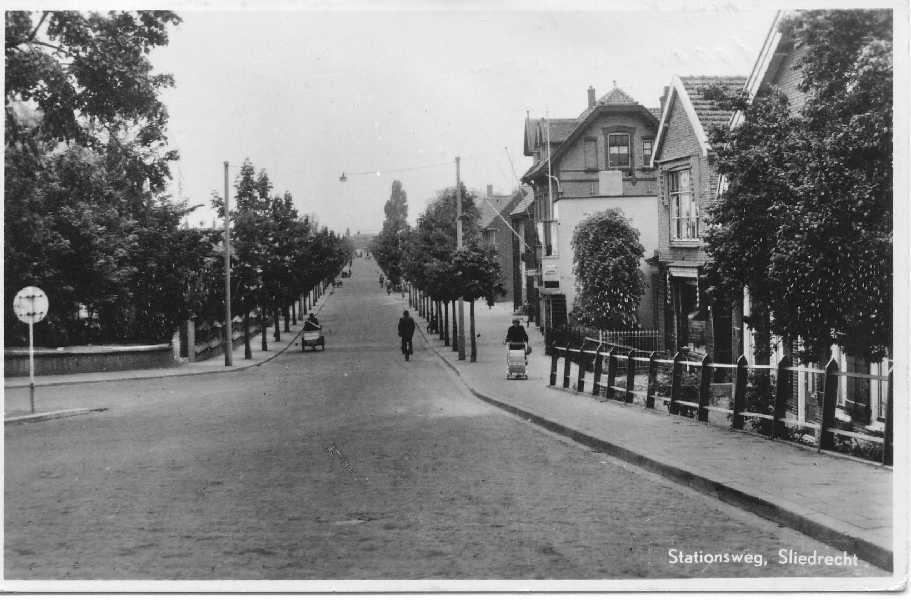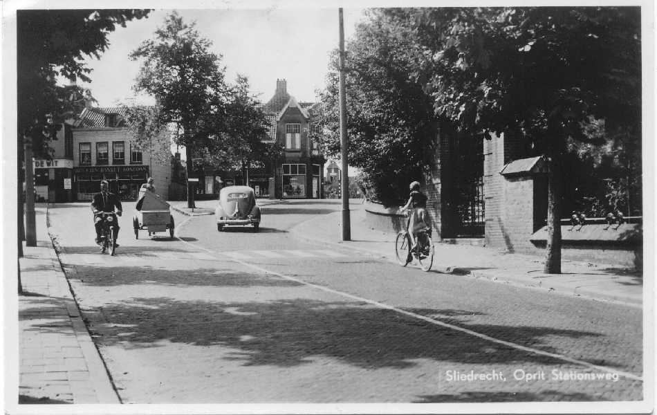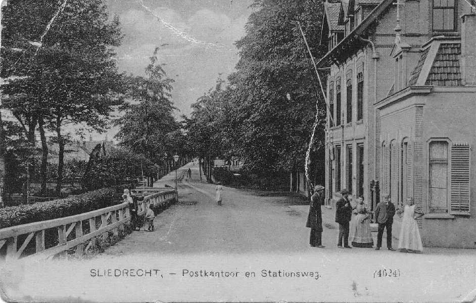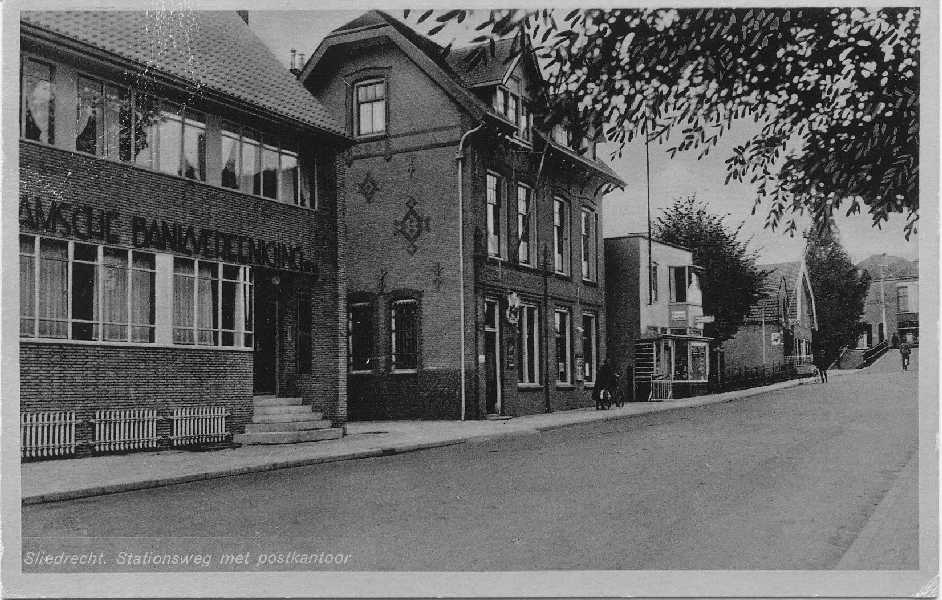 Stationsweg met Rotterdamse Bank, postkantoor en kapper Harinck