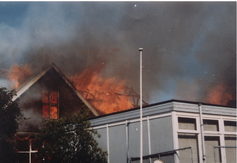 Afbranden school aan de Wilhelminastraat. Eeerst school 6, later Erasmusmavo