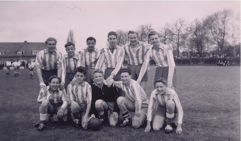 Schoolvoetbalelftal openbare ULO op het terrein aan de Hobbemastraat.