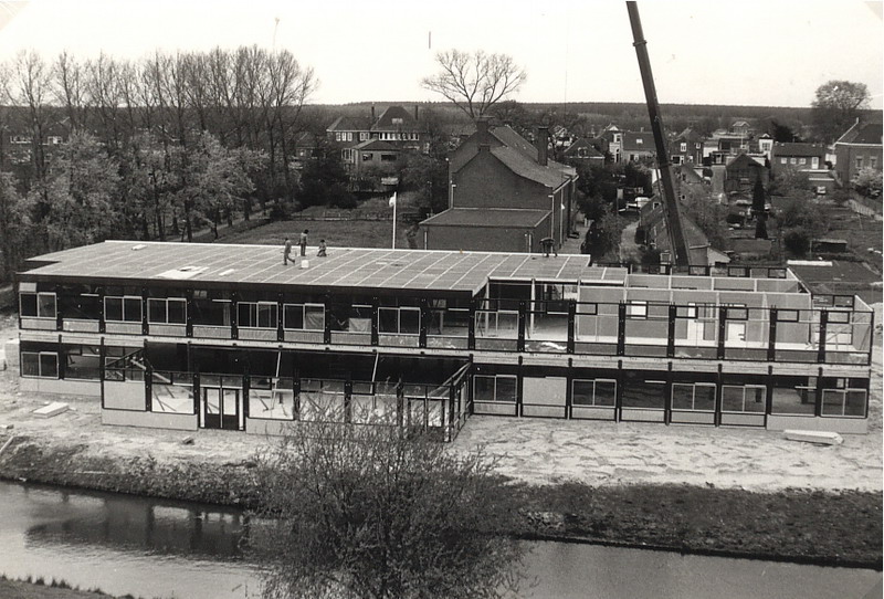 Bouw van de Erasmusmavom et op achtergrond de vakschool voor meisjes en de Boslaan.