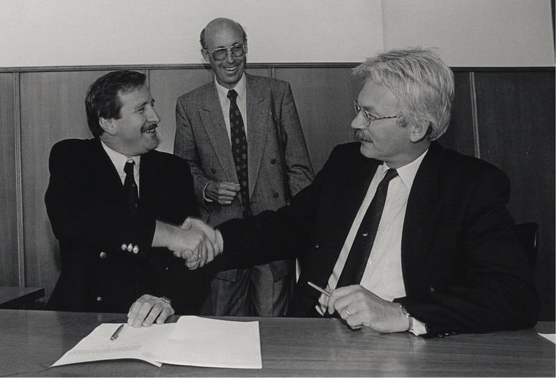 Samenwerking Grienden en gemeente Sliedrecht. Burgemeester Kleywegt en Jongeneel