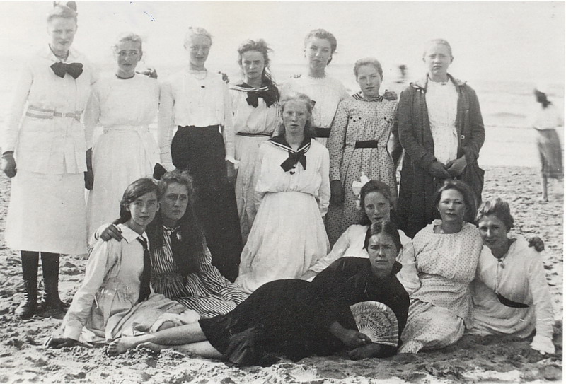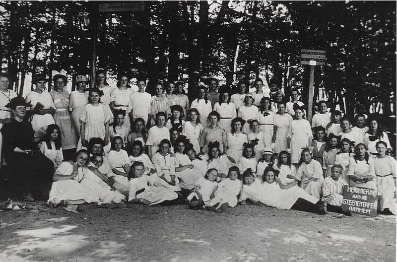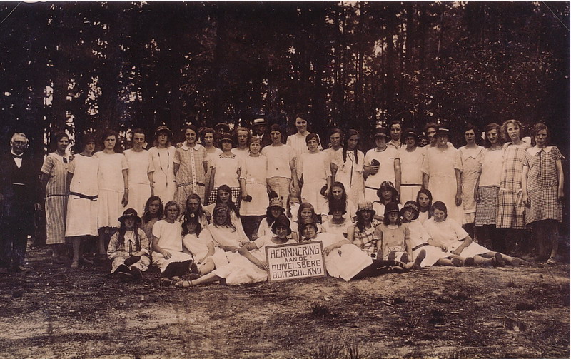 Schoolfoto van een schoolreisje van de Vakschool voor Meisjes.