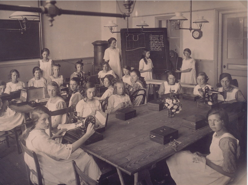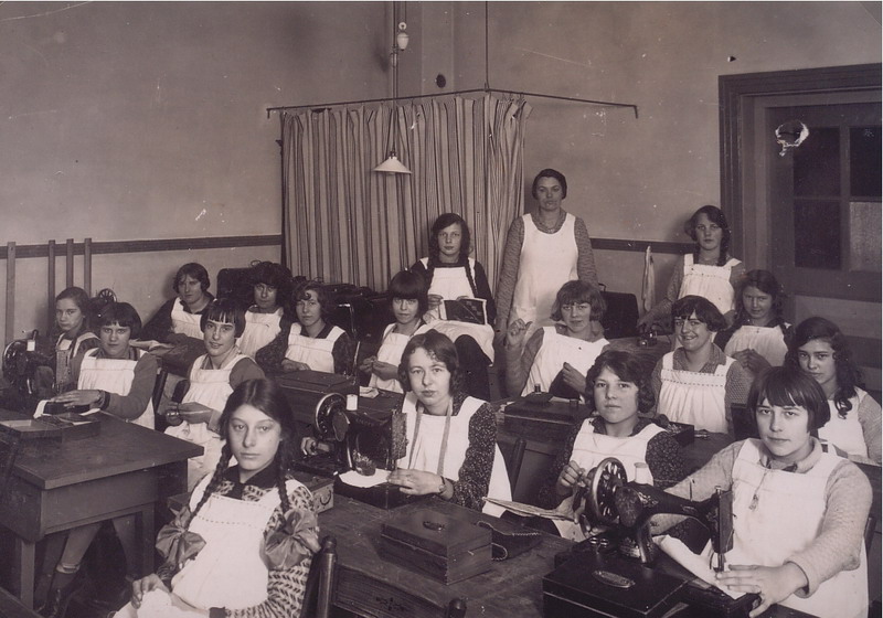 Naailes in de Vakschool voor Meisjes