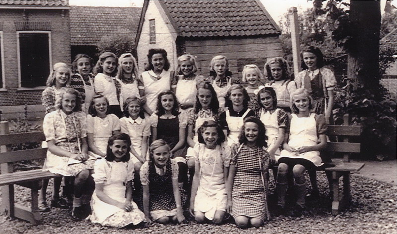 Schoolfoto vakschool voor meisjes bij de Boslaan