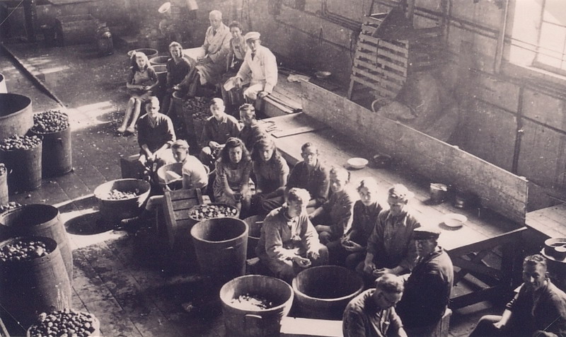 Aardappelschillen door jonges en meisjes. Gaarkeuken???