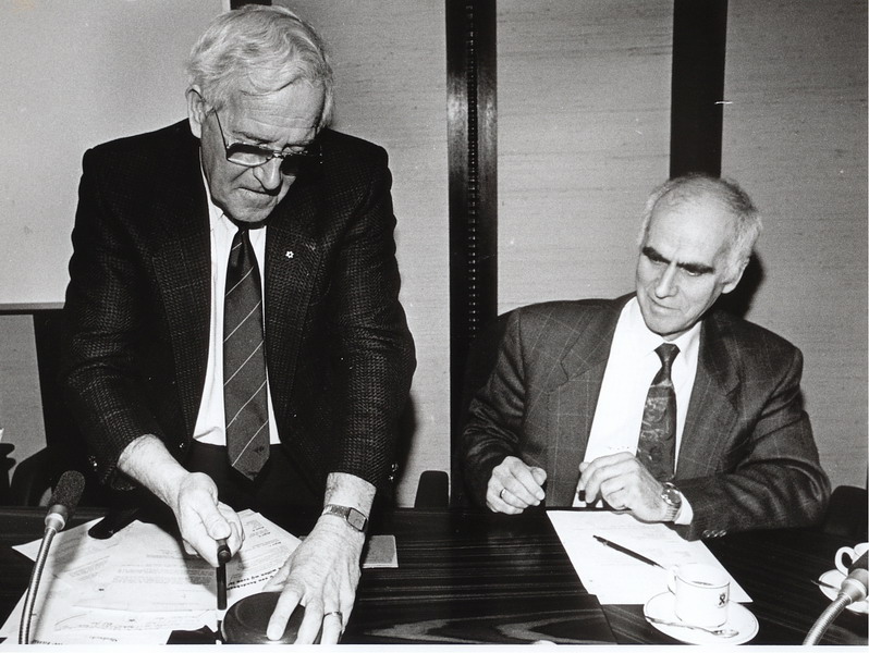 Wethouder Bas Korporaal en de latere wethouder Lavooy