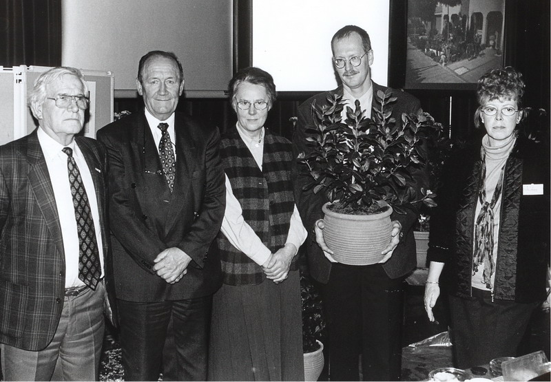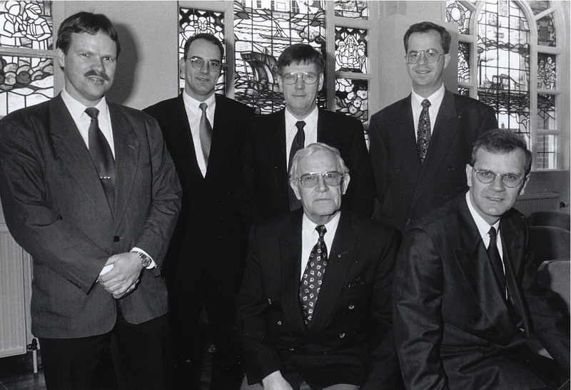 Fractie SGP/RPF/GPV 1994-1998. Links naar rechts Ronald.J. Kitsz, Hennie van Kooten, Jan Büchner, Kees den Bok, Dick van Meeuwen, midden Bas Korporaal.