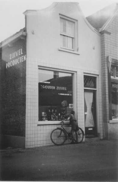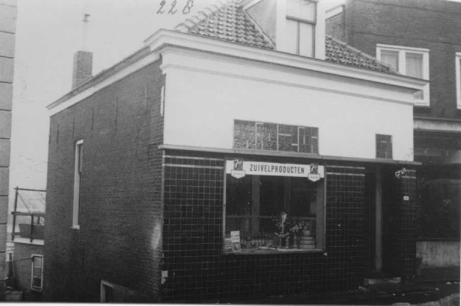 Melkhandel Redelijkheid in Kerkbuurt-Oost, Pand gekocht 1955 van de Merba. Later 1967 melkboer Langerak, later Reformwinkel. Nu 't Geveltje.
