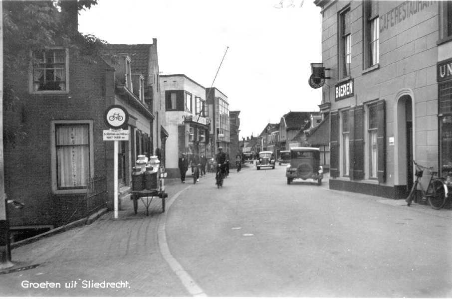 Kerkbuurt nabij Smidsstoep met links fietsenzaak Rikkers.