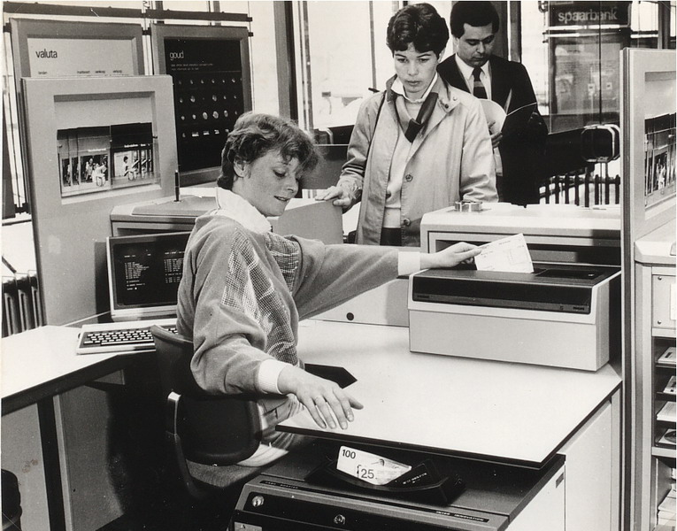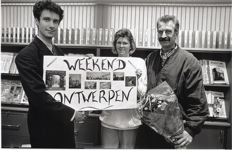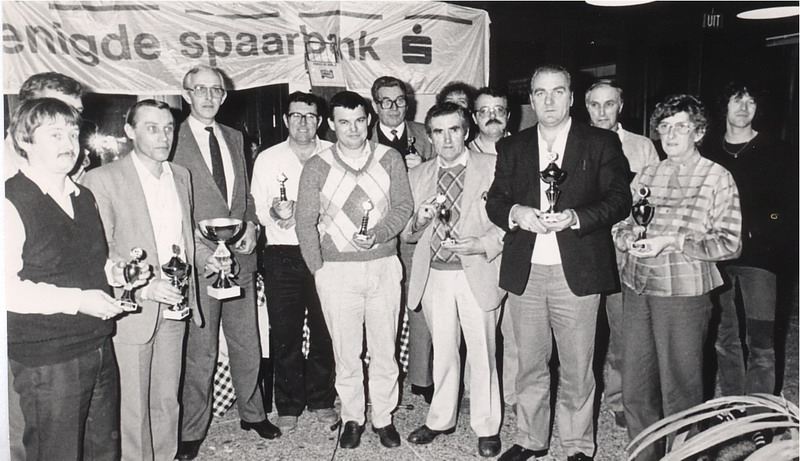 Prijswinnaars bij een Sliedrechtse bank. De winnaar heet A. Boer