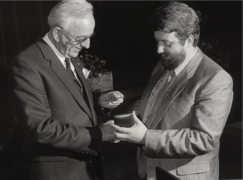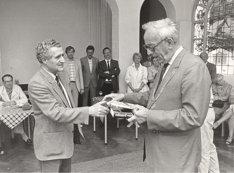 Burgemeester Hendriks met de heer Nico Kroon.