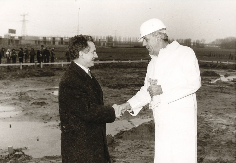 Burgemeester Hendrik bij het slaan van de eerste paal voor de Kennedyschool in de Prickwaert.