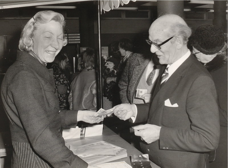 Burgemeester Chris van Hofwegen koopt de eerste kinderzegels