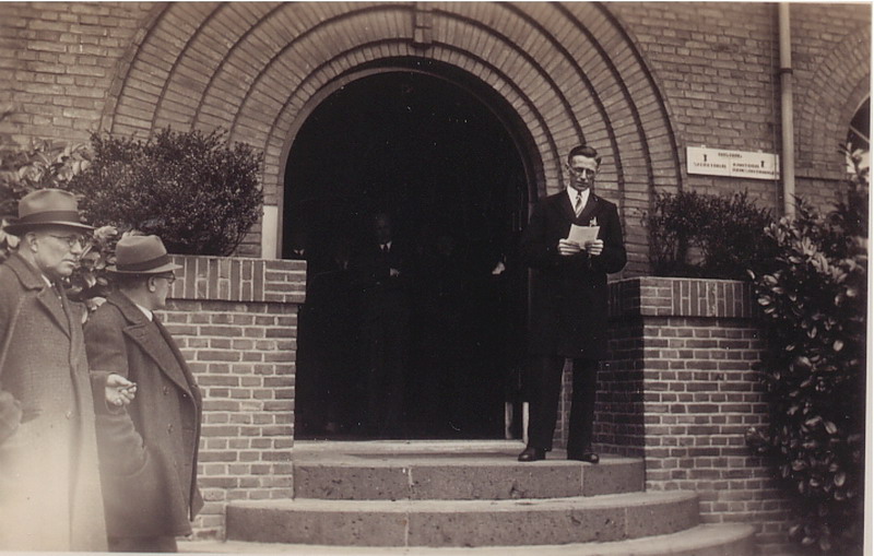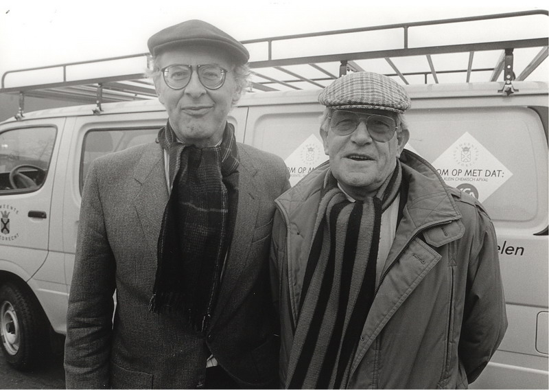 Burgemeester Spijkerboer en de heer De Snoo, directeur Burgemeester Poppingschool.
