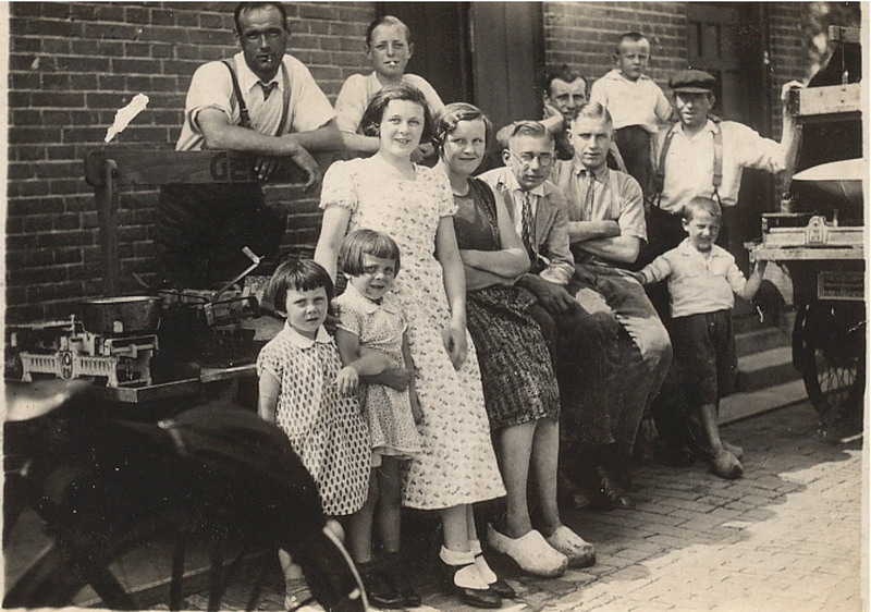 Kees van den Berg:"Ik denk dat in het midden met bril groenteboer Lanser is. Links groentekar en rechts staan de weegschalen."